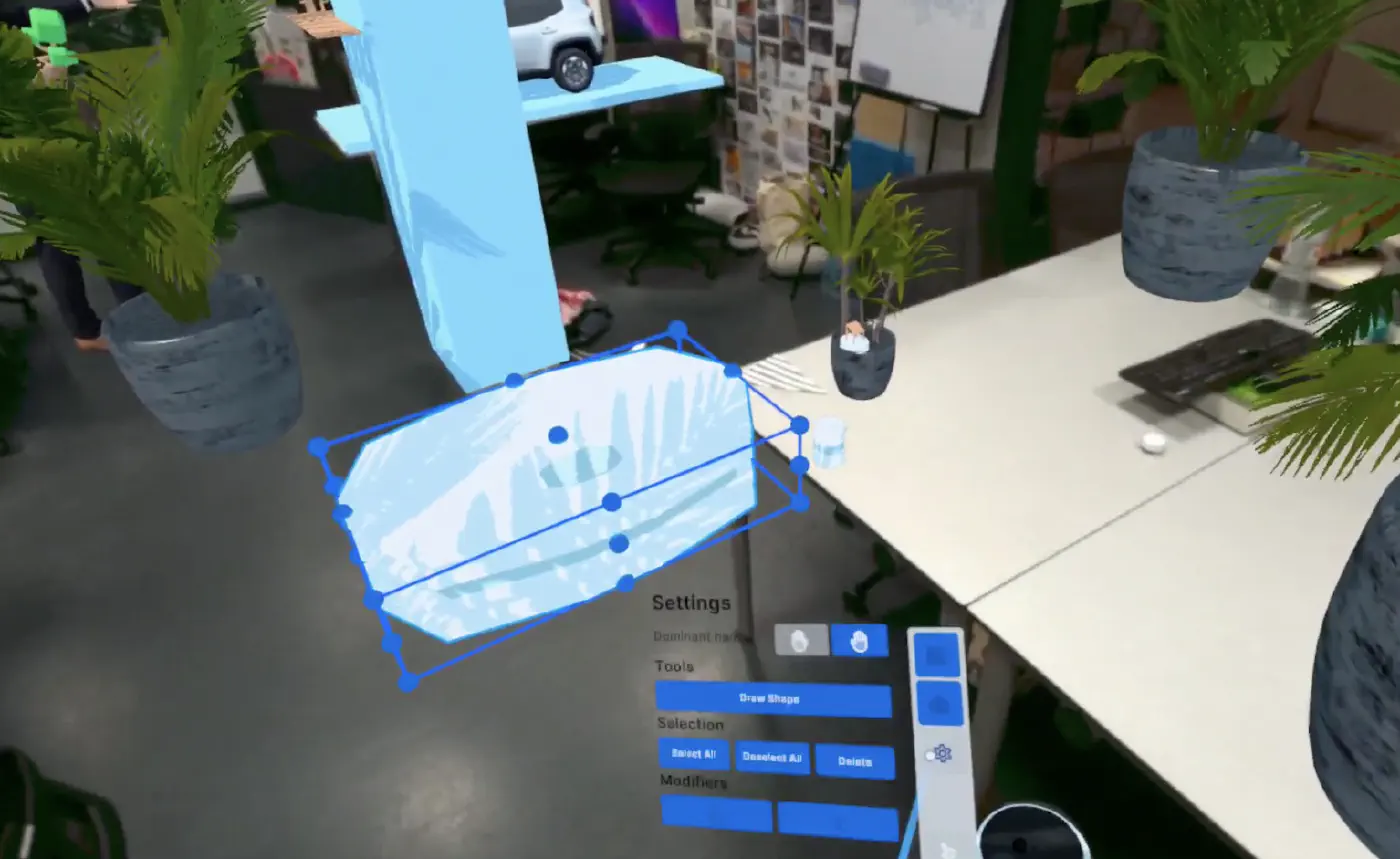 I hate putting the thing on my head. It’s the greatest thing ever, but my mind says no. I don’t get headaches, I don’t get dizzy, I can spend 5 hours in Gravity Sketch drawing entire buildings, but I just don’t like the experience. And the main reason is; best case, it’s only a marginal improvement over just sitting behind a computer. Productivity is built around typing and keyboard shortcuts. VR does away with all that and dumbs your interactions down to a couple of buttons, which are filled to the absolute brim with confusing functionality that’s context specific. i.e. in ShapesXR the entire functionality of buttons changes depending on whether you’re hovering over an object or not.