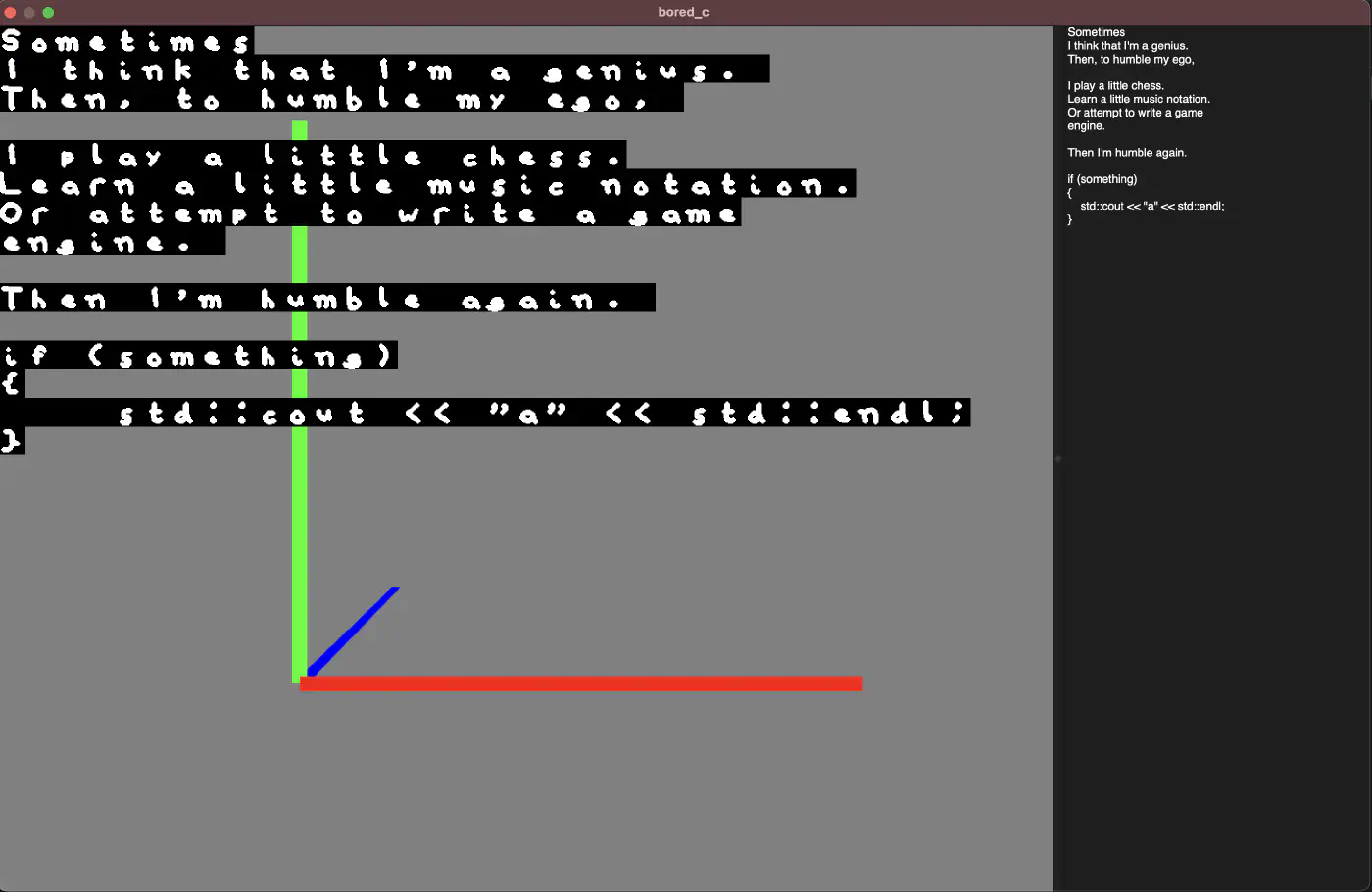 So I decided to do a little experiment: write code so simple, it would seem a beginner had written it (note that I still consider myself a beginner). No abstractions until absolutely necessary. In this line of thought, even functions and data structures are considered abstractions. Hardcoding is good.