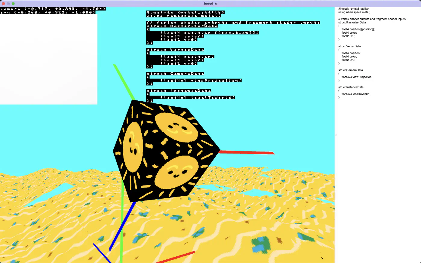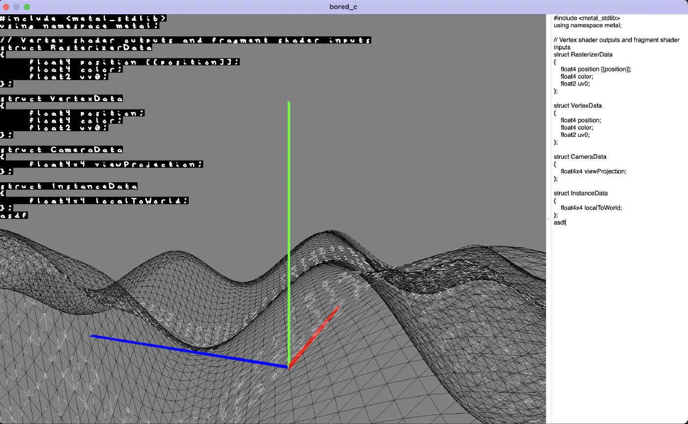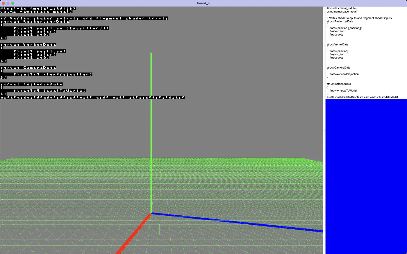 Half a year ago I embarked on the quest to build a cross-platform, general purpose game engine. I was working on asynchronous asset loading, a reflection system, an ECS for representing the scene, serialization, a graphics API wrapper for Metal and Vulkan, but barely got some simple rendering tests on top of these systems.